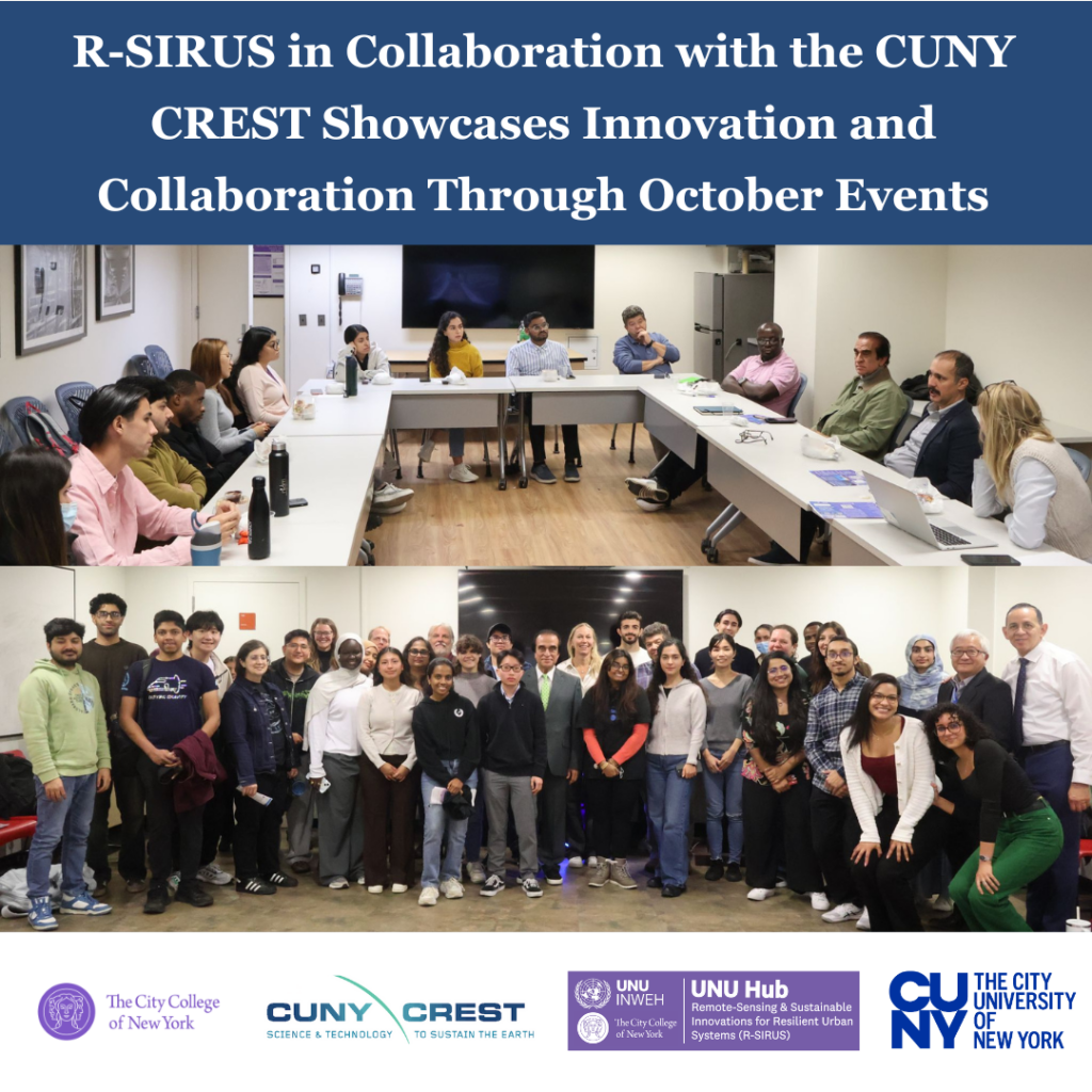 The United Nations University (UNU) Hub at The City College of New York (CCNY)-Remote Sensing & Sustainable Innovations for Resilient Urban Systems (R-SIRUS) in collaboration the The CUNY CREST Institute hosted two inspiring events in October 2025 that highlighted the hub’s growing role in advancing sustainable, resilient urban systems through research, education, and collaboration.